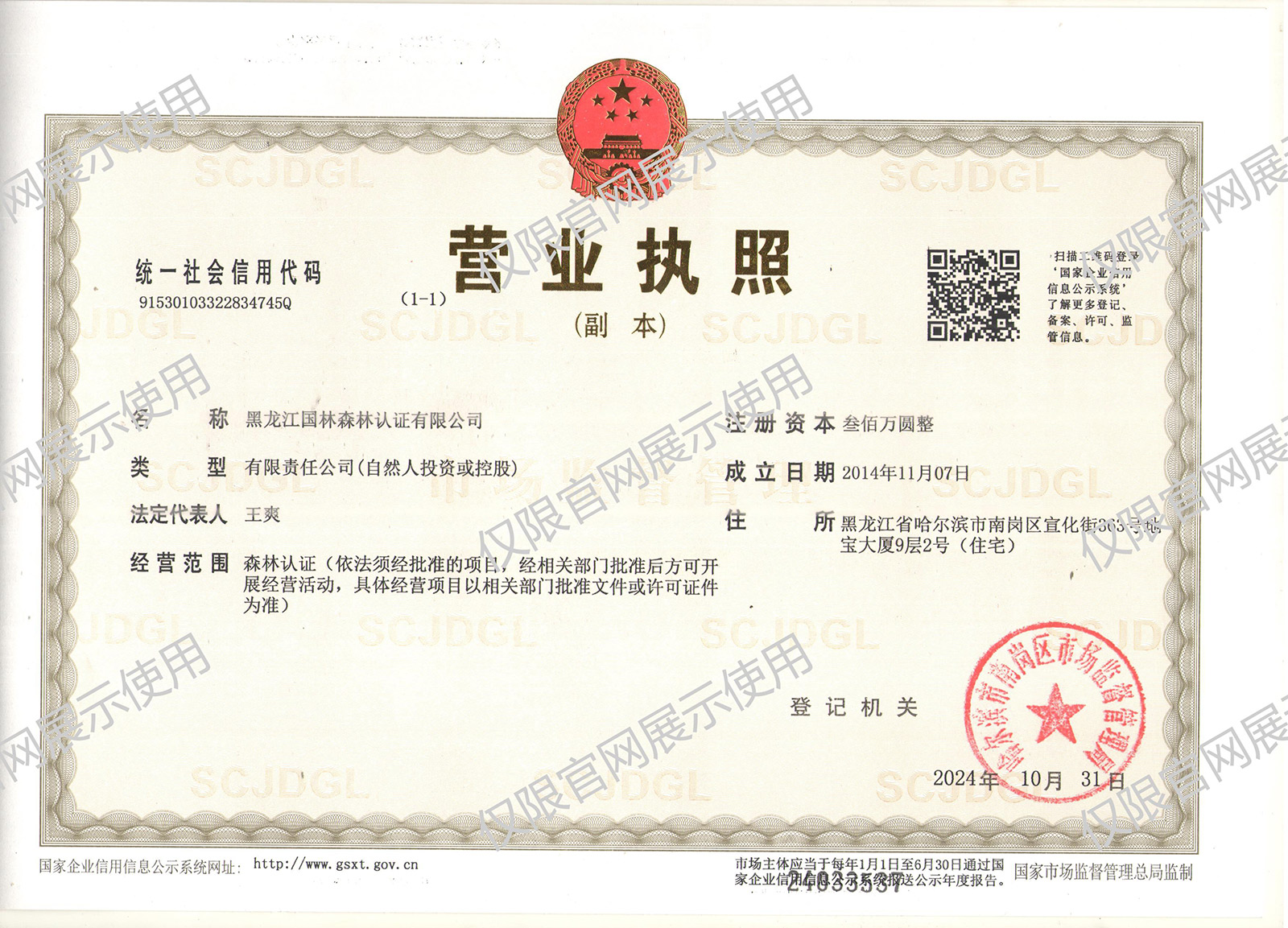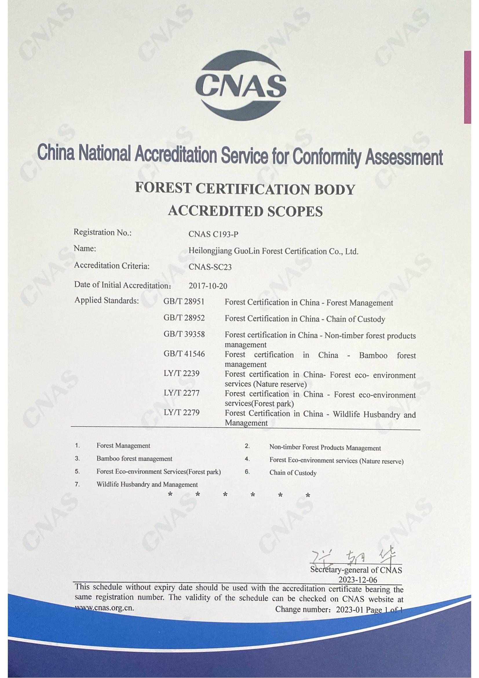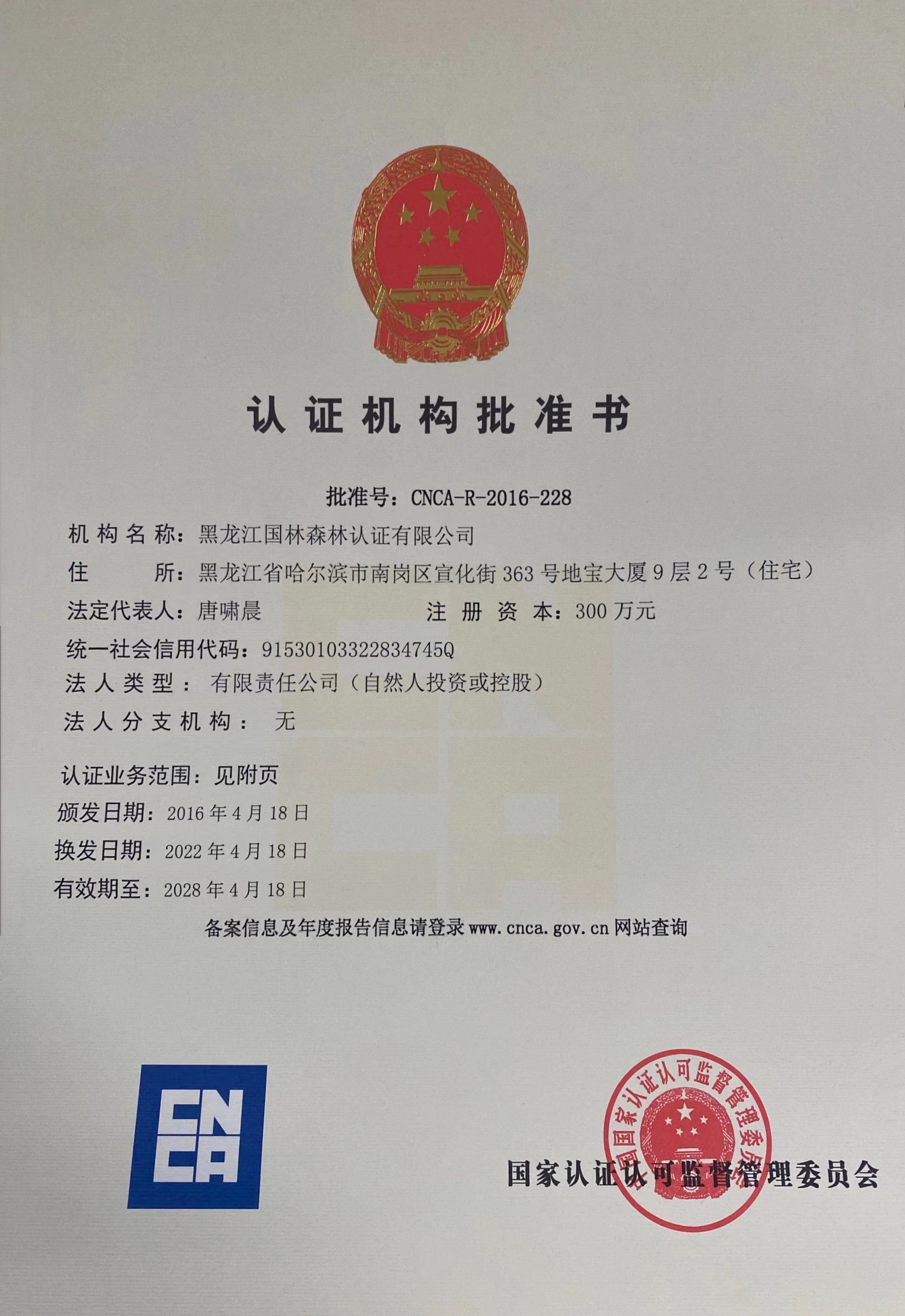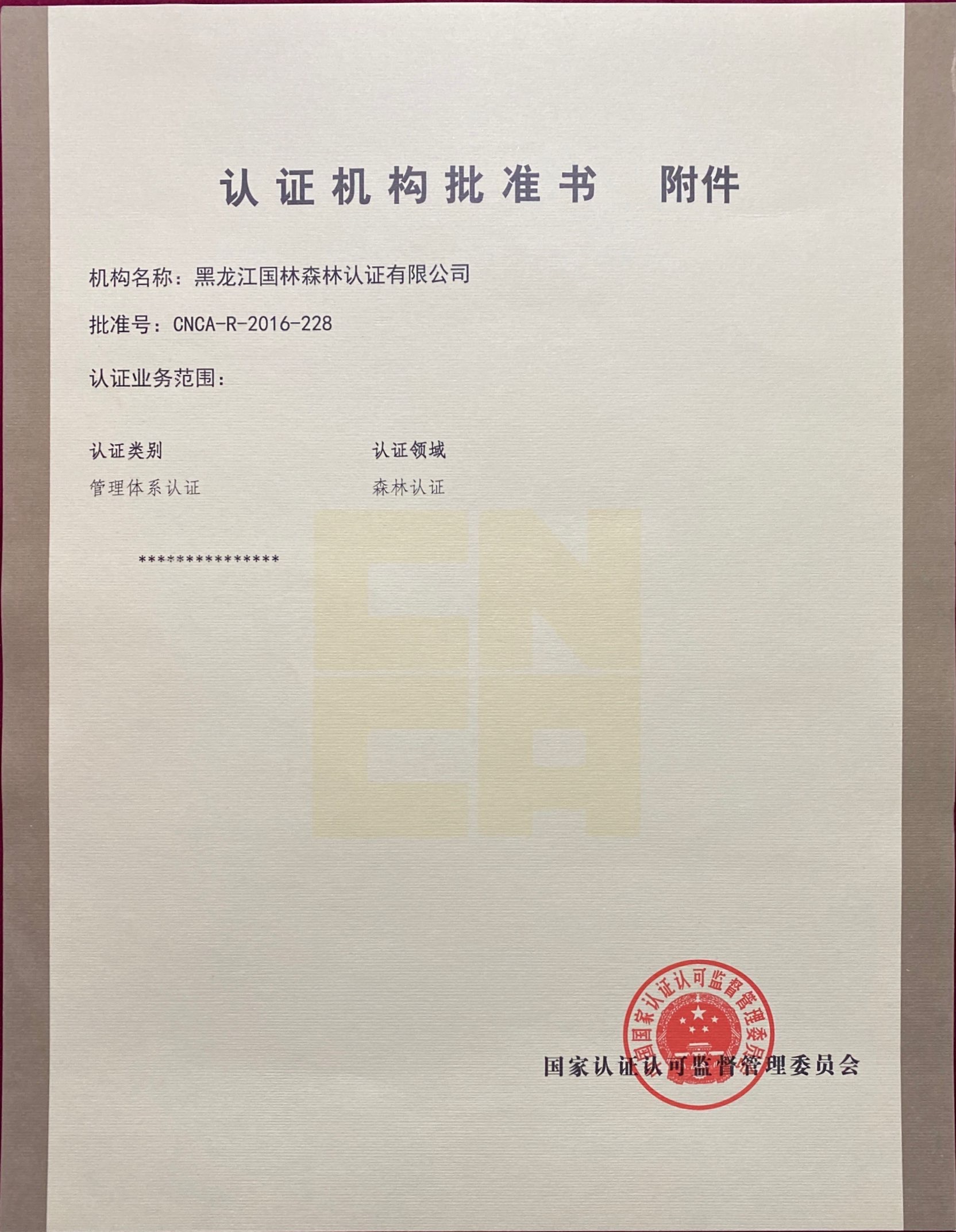 黑龙江国林森林认证有限公司是目前黑龙江省唯一一家经国家认证认可监督管理委员会(CNCA)批准的、国家合格评定委员会(CNAS)认可的独立、公正、专业的第三方森林认证机构,是一个汇聚众多专业人才,完成高水平森林认证的优质平台,面向黑龙江及全国各地的森林经营单位及林产品加工企业开放,为企业提供森林认证服务。